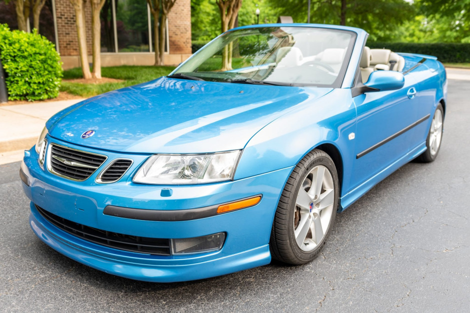 This 2007 Saab 9-3 Aero convertible is finished in Electric Blue Metallic over Beige Parchment leather and is powered by a turbocharged 2.8-liter V6 paired with a six-speed manual transaxle. Equipment includes a power-operated black soft top, 17″ alloy wheels, automatic climate control, heated and power-adjustable front seats, and an in-dash CD changer. The car spent time in Delaware, New Jersey, and Virginia before it was purchased by the seller and subsequently relocated to Georgia in December 2019.