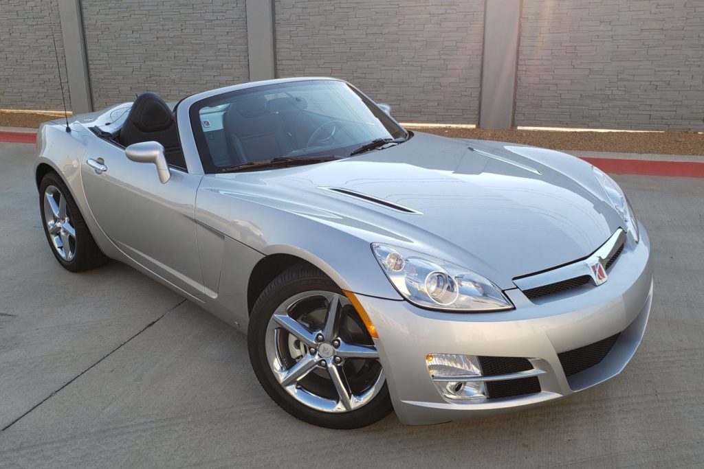 This 2007 Saturn Sky has 223 miles and is finished in silver over black leather. The car was reportedly purchased new by the seller’s father-in-law in Texas and inherited by the seller and his wife in 2017. Power comes from a 2.4-liter inline-four paired with a five-speed automatic transmission, and additional equipment includes a factory limited-slip differential, a black soft top, air conditioning, 18″chrome-finished wheels, and a factory stereo with satellite radio and a CD changer.