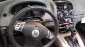 Optional 18″ chrome-finished five-spoke wheels wear 245/45 Goodyear RS-A tires. The four-wheel independent suspension features Bilstein shocks, while braking is provided by four-wheel discs with ABS and dynamic rear proportioning.