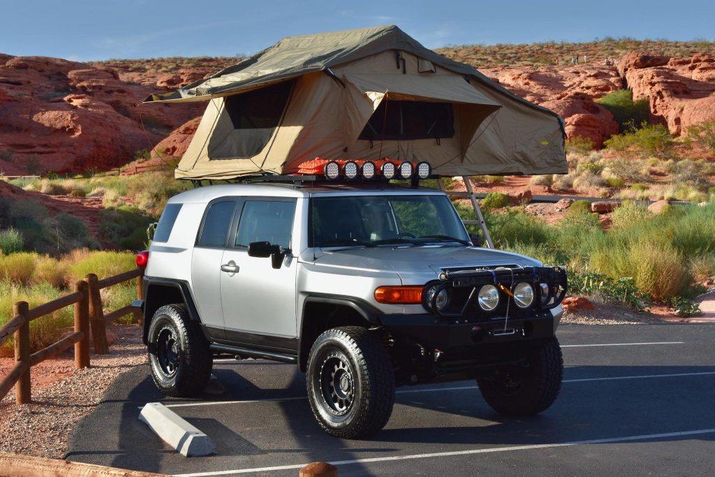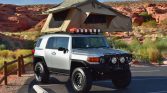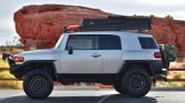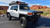 This 2007 Toyota FJ Cruiser was registered in Utah with its original owner until acquisition by the seller in March 2021. The truck is finished in silver over gray and is powered by a 4.0-liter V6 paired with a five-speed automatic transmission, a dual-range transfer case and a locking rear differential. Equipment includes a roof rack with a Smittybilt roof-top tent, an aftermarket front bumper with a Warn winch, a 1″ leveling lift and Old Man Emu…