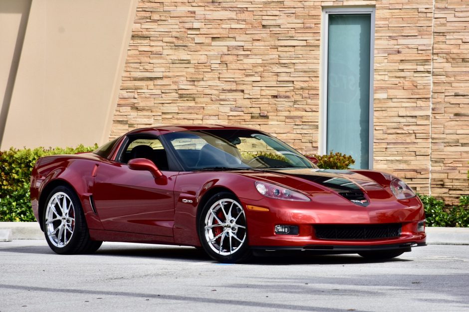 This 2008 Chevrolet Corvette Z06 is #367 of 505 examples produced to honor the 427ci V8 engine option initially offered on the 1966 Corvette. All 427 Limited Editions were finished in Crystal Red Tintcoat with a central stripe over Dark Titanium leather, and each came equipped with the 3LZ Preferred Equipment package, 427-specific wheels, and unique interior trim. Power is provided by a 7.0-liter LS7 V8 mated to a six-speed manual transaxle, and additional equipment includes a limited-slip differential, dual-zone automatic climate control, a Bose audio system, a head-up display, and navigation.