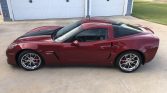 This 2008 Chevrolet Corvette Z06 is #92 of 505 Crystal Red Limited Edition models built worldwide, all of which were finished in Crystal Red Tintcoat with a central stripe over Dark Titanium leather. It is powered by a 7.0-liter LS7 V8 paired with a six-speed manual transmission and a limited slip differential.