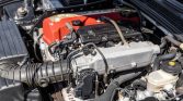 Power is sent to the rear wheels through a six-speed manual transmission and a Torsen limited-slip differential.The leather-wrapped steering wheel frames a sweeping tachometer with an 8k-rpm redline, a digital speedometer, and gauges for coolant temperature and fuel level. The digital odometer shows 57k miles.