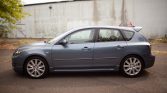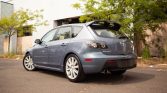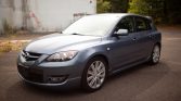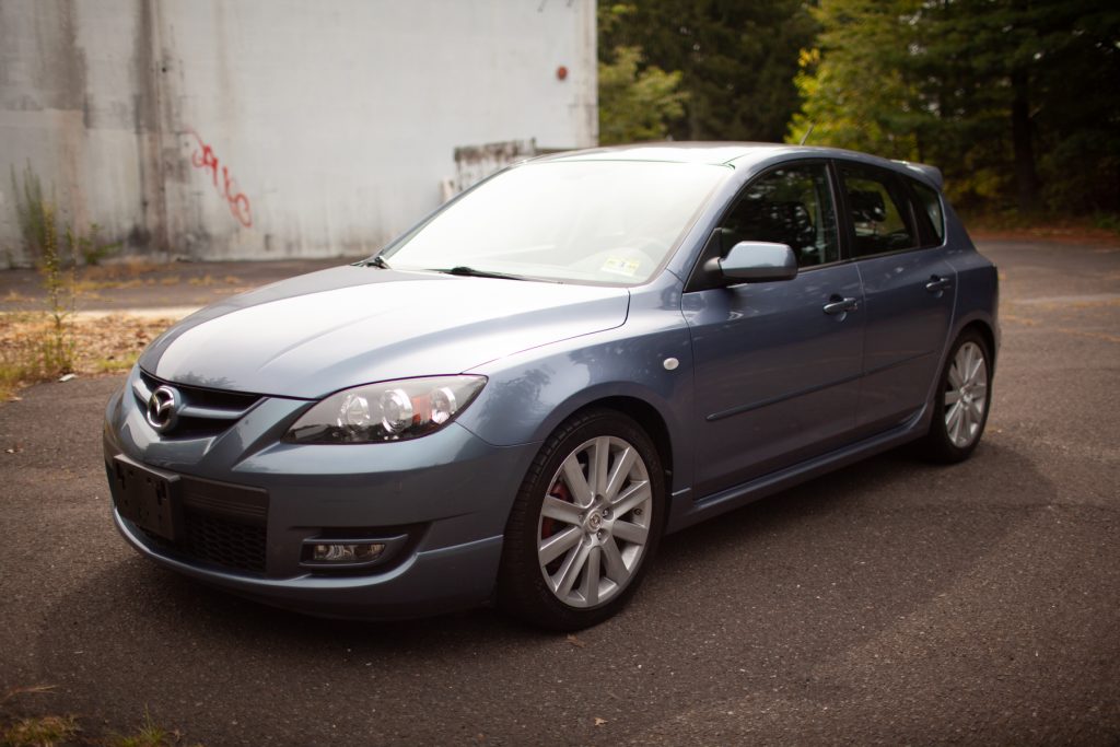 This 2008 Mazda Mazdaspeed3 is finished in Cosmic Blue Mica over two-tone upholstery and is powered by a turbocharged 2.3-liter inline-four paired with a six-speed manual gearbox. Features include a limited-slip differential, a six-CD Bose stereo, and automatic climate control.