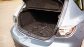 The seats are trimmed in black leather with gray cloth seating surfaces and Mazdaspeed embroidery. Additional equipment includes a 60/40 folding rear seat, cruise control, automatic climate control, power windows and locks, aluminum pedals, and an in-dash six-disc CD changer paired with a Bose audio system.