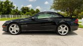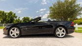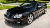 This 2008 Mercedes-Benz SL55 AMG is a black-over-black convertible that is powered by a supercharged 5.4-liter V8 paired with a five-speed automatic transmission. Equipment includes a retractable roof with a panoramic glass panel, bi-xenon headlights, Parktronic, Keyless-GO, and heated and ventilated multi-contour seats. The car was first registered in Illinois and spent time in Wisconsin and Arizona before it was acquired by the seller in July 2021.