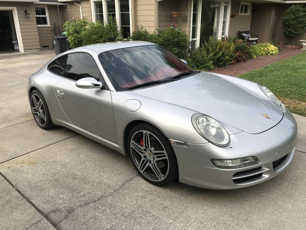 This 2008 Porsche 911 Carrera S coupe is finished in Arctic Silver Metallic of Carrera Red Natural leather, and it is powered by a 3.8-liter flat-six paired with a six-speed manual transaxle. Options include the Bose High End Sound and the Power Seat packages, and modifications include 997 Turbo-style 19″ wheels and a Fabspeed Motorsport carbon-fiber intake. The car now has under 50k miles, and the oil was changed in preparation for the sale.