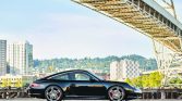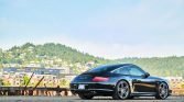 The Targa 4S featured wider rear bodywork compared to that of the standard 997, and this example is finished in black. Exterior equipment includes xenon headlamps with washers, a sliding glass roof panel, a retractable rear spoiler, and quad exhaust outlets with polished tips.
