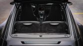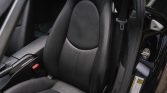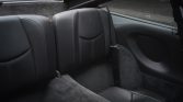 The seats are upholstered in black leather and are joined by a color-matching dashboard, door panels, and carpets. Amenities include the Sport Chrono package, power-adjustable and heated front seats, cruise control, automatic climate control, Bose audio, and a Sony head unit with Apple CarPlay integration. The Targa featured additional storage behind the rear seats, which is aLessible from beneath the rear hatch glass.