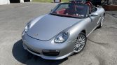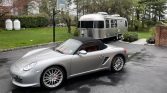 This 2008 Porsche Boxster RS60 Spyder is #79 of 1,960 cars built to commemorate Porsche’s overall victory at the 1960 12 Hours of Sebring. Finished in GT Silver Metallic over Carrera Red Natural leather, the car is powered by a mid-mounted 3.4-liter flat-six paired with a six-speed manual transaxle. Features include 19″ SportDesign wheels, a restyled front valance, a black windshield surround, red taillights, a black soft top, heated hardback sport seats, a sport exhaust system, and the Sport Chrono package.