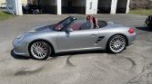 This 2008 Porsche Boxster RS60 Spyder is #79 of 1,960 cars built to commemorate Porsche’s overall victory at the 1960 12 Hours of Sebring. Finished in GT Silver Metallic over Carrera Red Natural leather, the car is powered by a mid-mounted 3.4-liter flat-six paired with a six-speed manual transaxle. Features include 19″ SportDesign wheels, a restyled front valance, a black windshield surround, red taillights, a black soft top, heated hardback sport seats, a sport exhaust system, and the Sport…