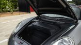 The 19″ SportDesign wheels are mounted with Continental ExtremeContact DWS06 Plus tires measuring 235/35 up front and 265/35 out back. The right-rear wheel has curb marks. The car is equipped with Porsche Stability Management (PSM), and braking is handled by red four-piston Porsche-branded calipers over cross-drilled rotors measuring 12.5″ and 11.8″ front and rear, respectively.