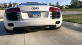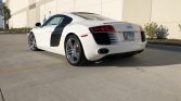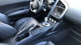 Five-spoke 19″ alloy wheels wear Pirelli P Zero tires measuring 235/35 up front and 305/30 out back. Braking is provided by black R8-branded calipers and cross-drilled rotors at each corner. The front struts were replaced in September 2021.