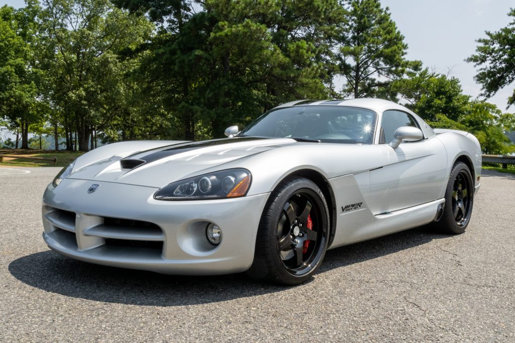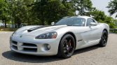 This 2009 Dodge Viper SRT-10 is one out of 100 Viper Owner Invitational ten-year special editions built and was sold new at Orange Coast Chrysler Jeep Dodge of Costa Mesa, California spent time in Texas prior to the seller’s acquisition in January 2021. The car is finished in Viper Silver Metallic with black racing stripes over a black interior and is powered by an 8.4-liter V10 paired with a six-speed manual transmission. Features include a limited-slip differential,…