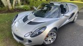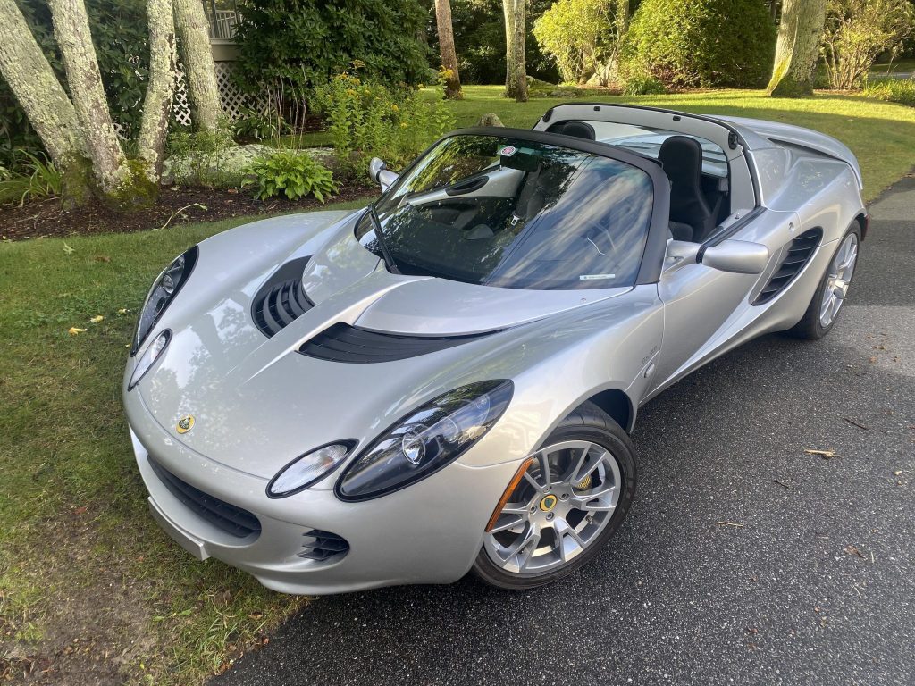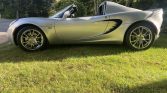 This 2009 Lotus Elise SC is finished in silver over black leather and powered by a supercharged 1.8-liter inline-four paired with a six-speed manual transaxle and a limited-slip differential. Equipment includes a black soft top, a rear spoiler, the Touring Package, traction control, power windows, an Alpine stereo, and an aftermarket back-up camera.