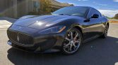 This 2009 Maserati GranTurismo S is finished in black over a matching leather and Alcantara interior and is powered by a 4.7-liter F136 V8 paired with a six-speed F1 semi-automatic transaxle. Features include 20″ Neptune wheels, power-adjustable heated front seats, dual-zone automatic climate control, Bose surround sound, an Alcantara headliner, body-colored interior trim, and navigation.