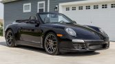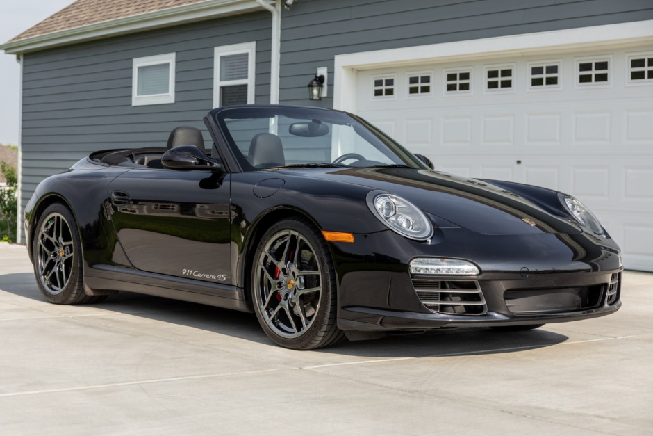 This 2009 Porsche 911 Carrera 4S cabriolet is finished in Basalt Black Metallic over black leather and is powered by a 3.8-liter flat-six driving all four wheels through a seven-speed PDK transaxle and a limited-slip rear differential. Equipment includes a black soft top, dynamic cornering lights, a sports exhaust system, the Sport Chrono Package Plus, heated and ventilated seats, a heated steering wheel, navigation, and Bose high-end audio. The car was delivered new to Porsche of North…