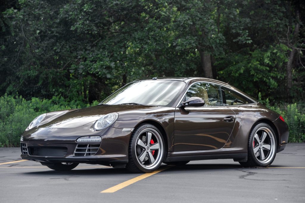 This 2009 Porsche 911 Targa 4S is finished in brown over tan leather and is powered by a 3.8-liter flat-six driving all four wheels through a seven-speed PDK transaxle. Features include a sliding glass roof panel, 19″ Fuchs-style wheels, a heated steering wheel and front seats, navigation, the Bose High End Sound Package, and a Shark Werks center muffler delete system. The car was first registered in California prior to the seller’s acquisition in September 2020. Subsequent service consisted of replacing the spark plugs, transmission pan and filter assembly, battery, brakes, air filters, and tires in addition to changing the engine oil and transmission fluid.