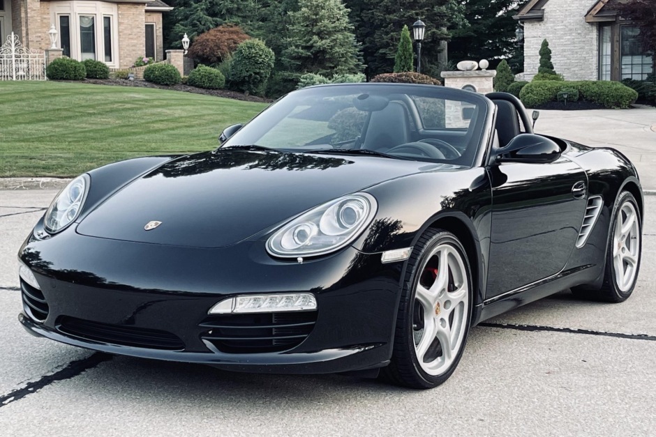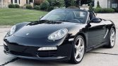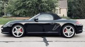 This 2009 Porsche Boxter S is powered by a 3.4-liter flat-six paired with a six-speed manual transaxle, and it is finished in black over black leather. Equipment includes a black soft top, 19″ Carrera Classic wheels, bi-xenon headlights, automatic climate control, a Bose Surround Sound System, a Bluetooth interface for mobile phones, self-dimming mirrors, an exterior rain sensor, and heated seats.