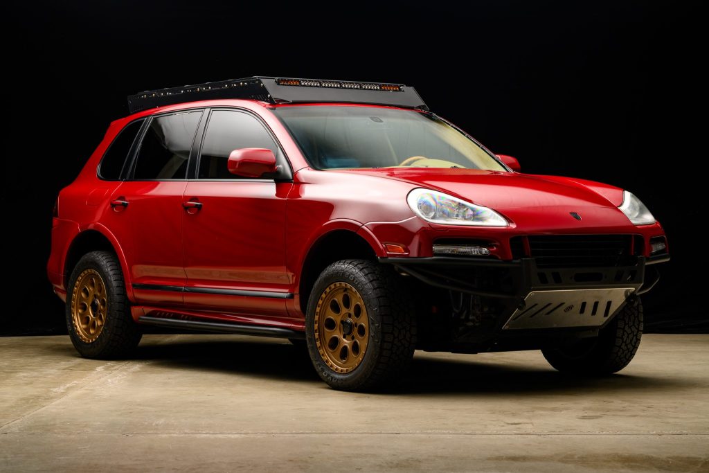 This 2009 Porsche Cayenne GTS was modified in January 2024 with a Eurowise Performance 3″ lift kit, Baja front bumper, roof rack, tubular control arms, and underbody protection as well as 18″ ALPHAequipt Bravo wheels. The vehicle is finished in GTS Red over Sand Beige leather and Alcantara, and it is powered by a 4.8-liter V8 linked with a six-speed Tiptronic S automatic transmission and a variable center differential. Retained factory equipment includes bi-xenon headlights, Bose surround sound,…