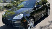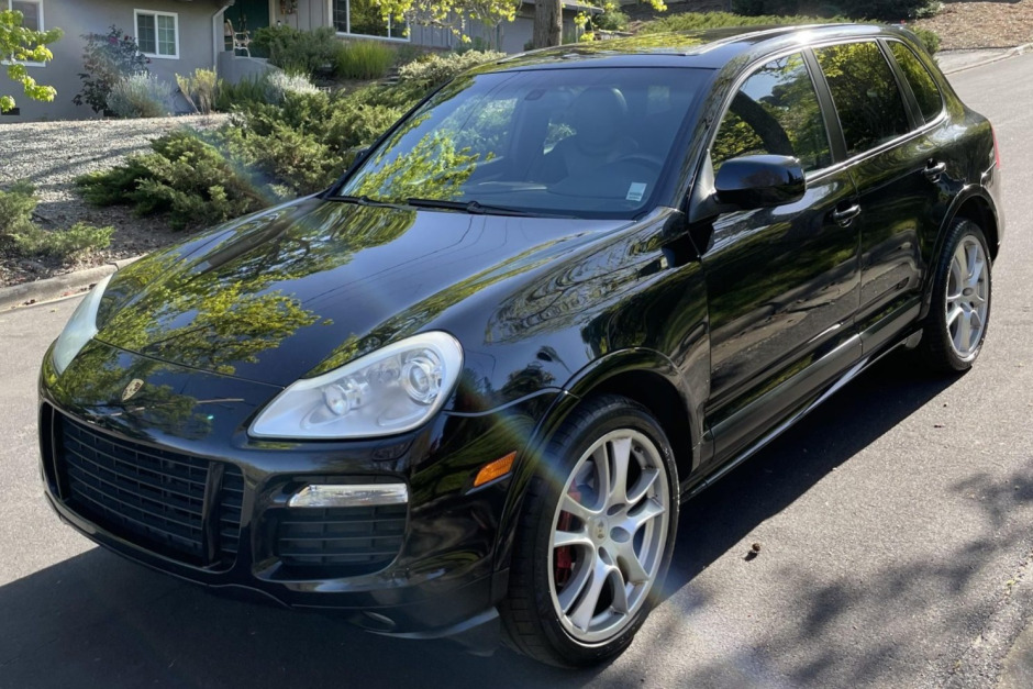 This 2009 Porsche Cayenne GTS is powered by a 4.8-liter V8 driving all four wheels through a six-speed Tiptronic automatic transmission and is finished in black over matching leather and Alcantara upholstery. Equipment includes bi-xenon headlights with washers, air suspension, factory-installed towing equipment, a panoramic sunroof, Porsche Communication Management with navigation, and a Bose audio system. Service since 2019 included replacement of the transfer case, starter, battery, oil vapor separator, front brake components, and tires.