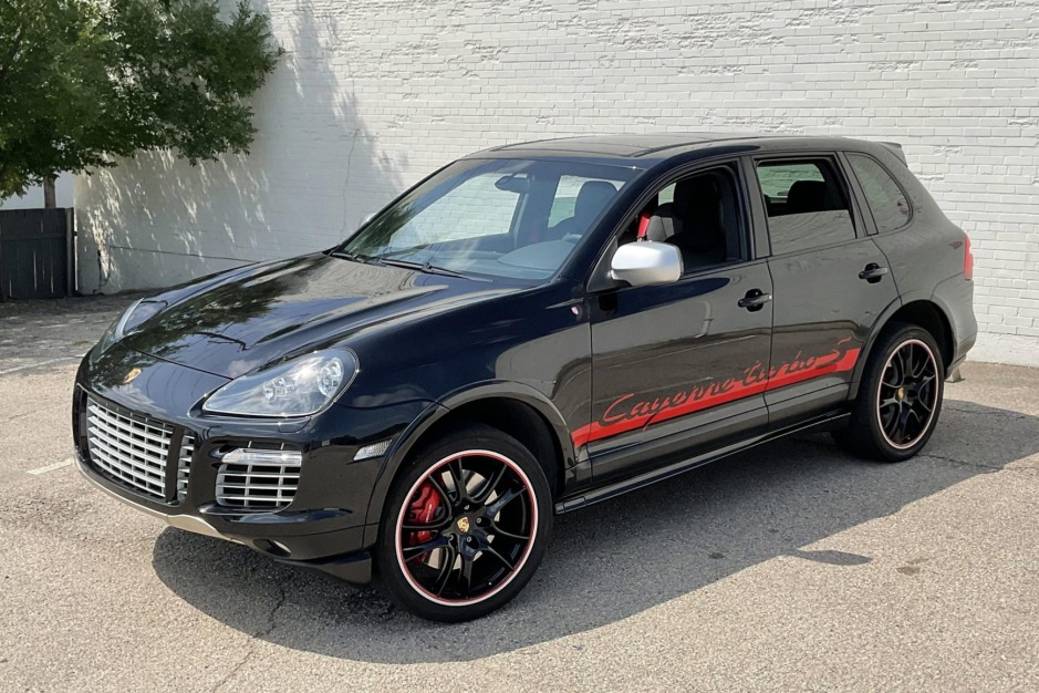 This 2009 Porsche Cayenne Turbo S is finished in Basalt Black Metallic over a Black and Steel Grey leather interior and is powered by a twin-turbocharged 4.8-liter V8 paired with a six-speed Tiptronic S automatic transmission and an all-wheel drive system with a variable center differential. Additional equipment includes a panoramic moonroof, Porsche Active Suspension Management, Park Assist, Bose surround sound, four-zone air conditioning, Porsche rear seat entertainment, the Sportdesign and Black Exterior Packages, and 21” Sport wheels. The truck was first registered in Missouri and was acquired by the seller in January 2017.