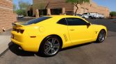 This 2010 Chevrolet Camaro SS Transformers Edition is #007 of approximately 250 examples modified by Street Legal Performance with the ZL575 package featuring a supercharged 6.2L V8 paired with a six-speed manual transmission and a limited-slip differential. The car is finished in Rally Yellow with black rally stripes over black leather upholstery and equipped with HID headlights, a Performance RTM hood, 20″ Red Line wheels, SLP sport suspension springs and adjustable sway bars, Brembo brakes, air conditioning, rear park assist, a Hurst shift knob, and a cold-air intake.