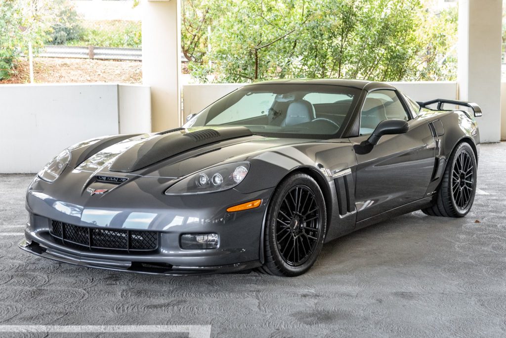 This 2010 Chevrolet Corvette Grand Sport was sold new by Lee Johnson Chevrolet in Kirkland, Washington, and modified by Callaway Cars of Old Lyme, Connecticut with the SC606 package. The 6.2-liter LS3 V8 was fitted with a supercharger, intercooler, and larger fuel injectors, and an upgraded exhaust system, carbon-fiber front splitter, and “PowerBulge” hood were also installed. The car is finished in Cyber Gray Metallic over a gray interior and equipped with a six-speed manual transaxle, a limited-slip differential, translucent removable roof panel, carbon-fiber rear wing, Pioneer touchscreen stereo, aftermarket rear-view camera, 18″ and 19″ Cray Astoria wheels, and the 3LT interior package, which includes Bose audio, a head-up display, heated and power-adjustable seats, and a power telescoping steering wheel.