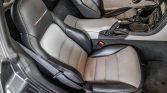 The cockpit features heated power-adjustable bucket seats upholstered in black leather with perforated Titanium Gray inserts and Grand Sport embroidery in the headrests. Amenities include a power telescoping steering wheel, head-up display, Bose audio, the Memory Package, dual-zone automatic climate control, a Pioneer touchscreen stereo, and a Callaway short-throw shifter.