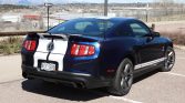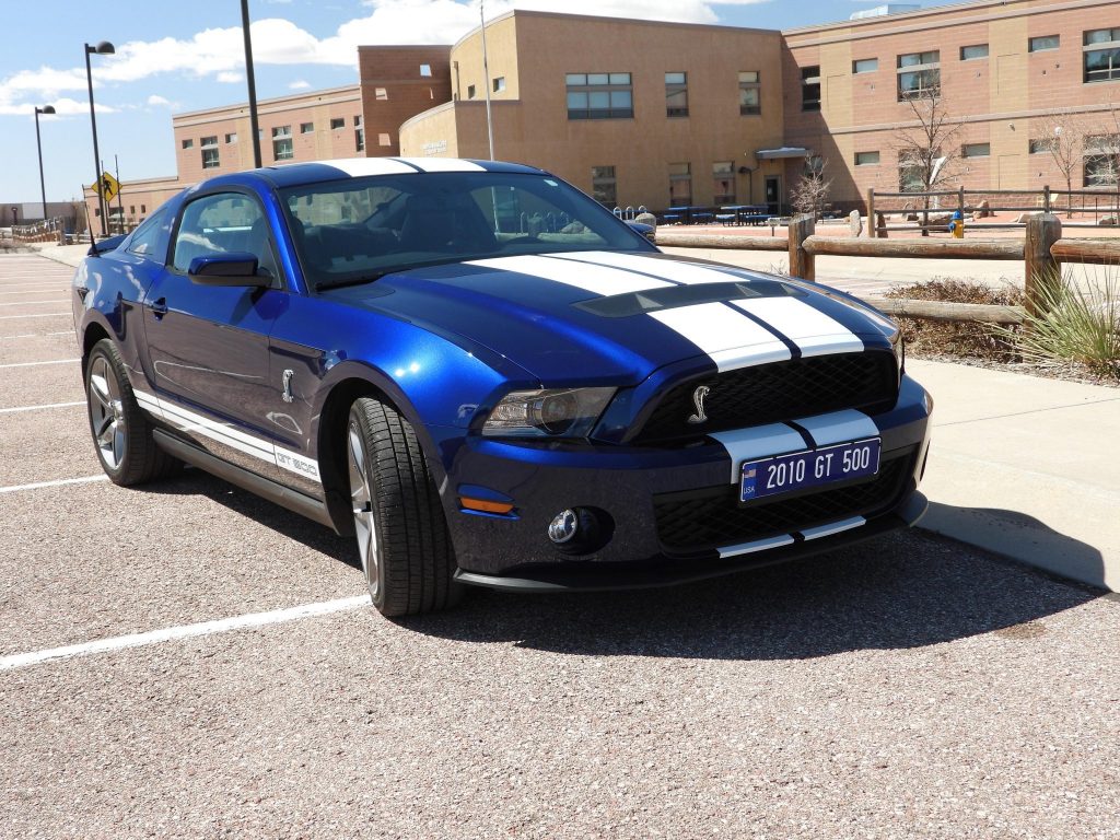 This 2010 Ford Shelby GT500 is finished in Kona Blue Metallic with white racing stripes and graphics, and it is powered by a supercharged 5.4-liter V8 paired with a six-speed manual transmission and a limited-slip differential. Equipment includes a front splitter, a rear spoiler and diffuser, 19″ alloy wheels, a power-adjustable driver seat, dual-zone automatic climate control, cruise control, and a Sync infotainment system with a CD player and Shaker audio. The car was first registered in Michigan, and it spent time in Ontario, Canada, prior to its acquisition in November 2018 by the seller, who relocated it to Colorado.