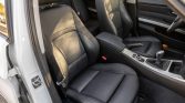 The exterior is finished in Alpine White (300) with Shadowline window trim and features a panoramic glass roof, black roof rails, adaptive xenon headlights, twin exhaust outlets, rain-sensing wipers, and rear parking sensors. The Carfax report lists damage oLurring on the front, rear, and left-rear of the vehicle in July 2019, and the seller states the left-rear quarter panel and front fenders were repaired and repainted to address the damage.