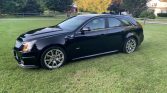 This Cadillac CTS-V wagon is finished in black over black leather and is powered by a supercharged 6.2-liter V8 mated to a six-speed manual transmission and a limited-slip differential. Equipment includes a panoramic sunroof, power-adjustable and climatized Recaro front seats with microsuede inserts, Midnight Sapele wood trim, a Bose sound system, navigation, A power-activated rear liftgate, dual-zone automatic climate control, parking sensors, and 19″ wheels. The car was first sold as a corporate fleet vehicle in Michigan…