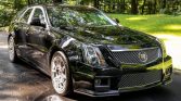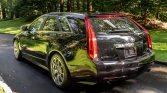 This Cadillac CTS-V wagon is one of fewer than 400 produced for the model year and was purchased new by the seller at Brogan Cadillac in Totowa, New Jersey. The car is finished in black over black leather and is powered by a supercharged 6.2-liter V8 paired with a six-speed manual transmission and a limited-slip differential. Equipment includes Magnetic Ride Control, Brembo brakes, 19″ wheels, a power-activated rear liftgate, a sunroof, ventilated Recaro front seats, a Bose sound system, and dual-zone automatic climate control.