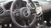 Access to the 2+2 cabin is gained through standard front and smaller rearward opening “suicide” doors. The cabin features Recaro front seats upholstered in black and gray with red stitching along with matching door panels and black carpets. Additional features include a Bose surround sound stereo, a leather-wrapped steering wheel and shift knob, alloy pedals, and RX-8 branded floor mats. The seller notes deformation of the driver’s seat outer side bolster.