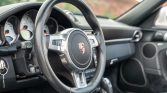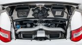 The cabin is trimmed in black leather with deviated white stitching, and it features heated power-adjustable front seats with Carrara White-finished backs as well as debossed Porsche crests on the headrests. Interior amenities include driver-seat memory settings, Porsche Communication Management with navigation, a Bose sound system, automatic climate control, a wind deflector, and cruise control. A K40 radar detector system has reportedly been added.