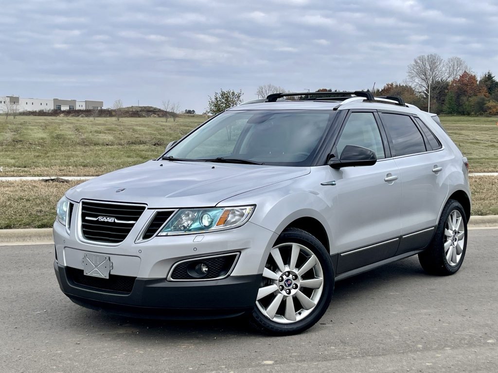 This 2011 Saab 9-4X Aero is finished in silver over black leather and is powered by a turbocharged 2.8-liter V6 paired with a six-speed automatic transaxle. Features include 20″ turbine-look alloy wheels, bi-xenon headlights, power-adjustable climatized front seats, dual-zone climate control, DVD navigation, Bose Audio, and a panoramic sunroof. The car was first registered in Georgia and later spent time in Kentucky and Missouri before being acquired by the seller in October 2021. The rear differential was replaced in 2017, and work performed in August 2021 included an oil change and replacement of the turbo boost pressure valve, turbo bypass valve, water pump, and rear shock absorbers.