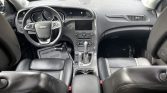 The cabin features power-adjustable climatized front seats upholstered in black leather with gray accents, and gray trim adorns the dashboard, center console, and door inserts. Amenities include dual-zone automatic climate control, Bose Audio, DVD navigation, and a rearview camera with front and rear parking sensors.