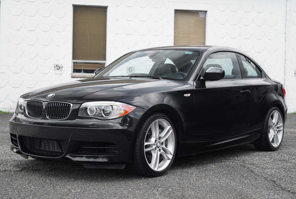 This 2012 BMW 135i coupe is finished in Black Sapphire Metallic over black leather and is powered by a turbocharged 3.0-liter inline-six paired with a six-speed manual transmission. Features include the BMW Power Performance Kit and the M Sport Package, along with xenon headlamps, power-adjustable and heated sport seats, 18″ alloy wheels, navigation, a power sunroof, and a Harmon Kardon sound system.