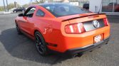 The car is finished in Competition Orange with a black roof, hood stripe, and side decals with Boss 302 lettering. Additional features include a pre-facelift Boss 302-specific front fascia, front and rear spoilers, a rear diffuser, and dual exhaust outlets.