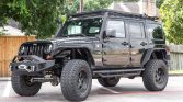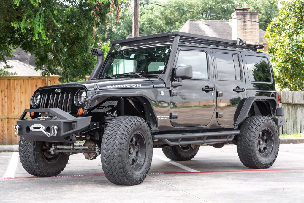 This 2012 Jeep Wrangler is a black-over-black Rubicon Unlimited example that was purchased new by the seller at Mac Haik Dodge Chrysler Jeep of Houston, Texas, and it was subsequently modified. A 6.2-liter LS3 V8 was installed along with a GM-sourced 6L80E six-speed automatic transmission, and additional modifications include a FrontRunner roof rack, 17″ Pro Comp Xtreme wheels, LED lighting, a ‘stubby’ front bumper with a SmittyBilt winch, an AEV lift kit, rear bumper, and snorkel, and…