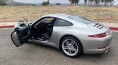 This 2012 Porsche 911 Carrera coupe is finished in Platinum Silver Metallic over black leather and is powered by a 3.4-liter flat-six paired with a seven-speed manual transaxle. Equipment includes 19″ wheels, LED headlights with the Porsche Dynamic Light System, a sunroof, heated and ventilated power-adjustable front seats, the Sport Chrono package, a Bose surround sound system, and a six-disc CD changer.