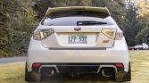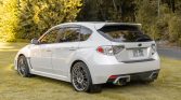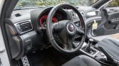 Power is delivered to all four wheels through a six-speed manual gearbox, front and rear limited-slip differentials, and a driver-controlled center differential. An Invidia N1 cat-back exhaust system was installed under previous ownership along with STI Group N engine and transmission mounts.