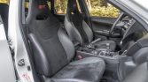Silver 18” BBS forged alloy wheels are wrapped in 245/40 Dunlop SP Sport 600 tires that show date codes from 2012. Braking is handled by STI-branded Brembo calipers at each corner. Cusco components have been added, including a front strut bar, a rear sway bar, a rear strut-tower bar, a pitch-stop mount, and chassis braces.