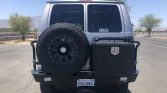 American Racing ATX 17″ wheels are finished in black and wrapped in 35×12.5″ BFGoodrich All-Terrain T/A tires. The full-size matching spare wheel is mounted with a Toyo A/T Open Country tire. The front Dynatrac ProRock 60 axle is fitted with Warn manually locking hubs and an ARB air locker, and the suspension is equipped with Fox shocks.