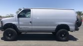 This 2013 Ford E-350 van has been fitted with a Sportsmobile four-wheel-drive conversion and has been registered in California since new. Power is provided by a 6.8-liter V10 paired with a five-speed automatic transmission, a dual-range transfer case, and a rear limited-slip differential. The van is equipped with a Dynatrac ProRock 60 front axle with an ARB air locker, an Atlas II dual-range transfer case, Fox shocks, Aluminess front and rear bumpers, an Aluminess rear tire carrier, a waterproof cargo box, rock sliders, and a CD…