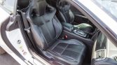 Black leather seats are trimmed in white stitching along with a matching dashboard, center console, and door panels. Additional interior features include a leather headliner, automatic climate control, a factory infotainment system with navigation, piano-black trim, and keyless entry with pushbutton start.