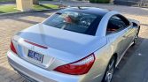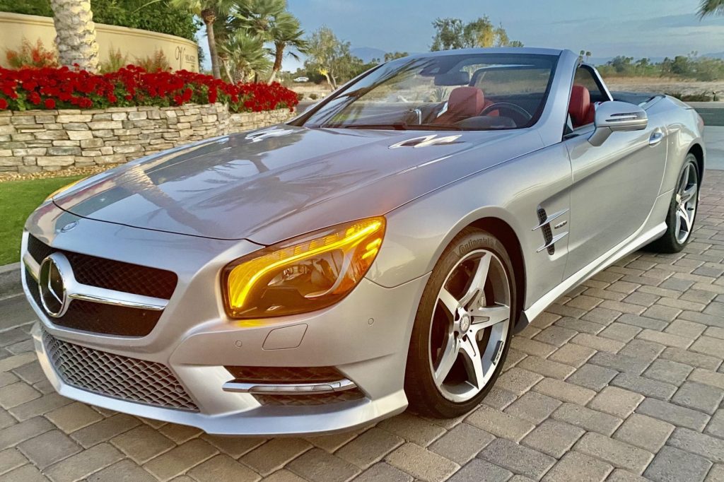 This 2013 Mercedes-Benz SL550 Edition 1 was first sold in California and remained registered in the state prior to the seller’s acquisition in 2021. The car is finished in Designo Crystal Silver over a Classic Red Exclusive Leather interior and is powered by a twin-turbocharged 4.6-liter V8 paired with a seven-speed automatic transmission. Additional equipment includes a power-retractable hardtop with a glass roof, dual-zone automatic climate control, a COMAND infotainment system, a Harman Kardon sound system, heated and ventilated seats, Airscarf neck warmers, bi-xenon headlamps, and 19″ AMG wheels. A Mercedes-Benz “A” service was performed in preparation for the sale.