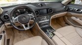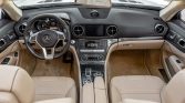 The aluminum body is finished in Diamond White Metallic (799U) and features AMG body styling as well as a power-retractable hardtop with a Magic Sky Control panoramic roof panel. Additional exterior equipment includes bi-xenon headlights with Active Curve Illumination, a reversing camera, front and rear parking sensors, and quad exhaust outlets.