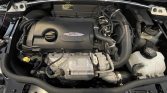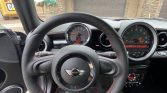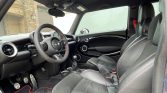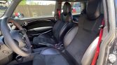 The 17″ four-spoke wheels feature bright-finished accents and are mounted with 215/40 Kumho V70A tires showing 2018 and 2020 date codes. The car features Bilstein adjustable coilovers and the ride height is lower than the base Mini. Braking is handled by red-finished six-piston front brake calipers over 13″ vented rotors and single-piston calipers over 11″ rotors out back.
