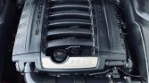 Factory 21″ Cayenne Sport Edition wheels feature Porsche-crest center caps and wear 295/35 Pirelli P Zero tires. Equipment includes Porsche Traction Management, front and rear stainless steel skid plates, and four-wheel disc brakes.
